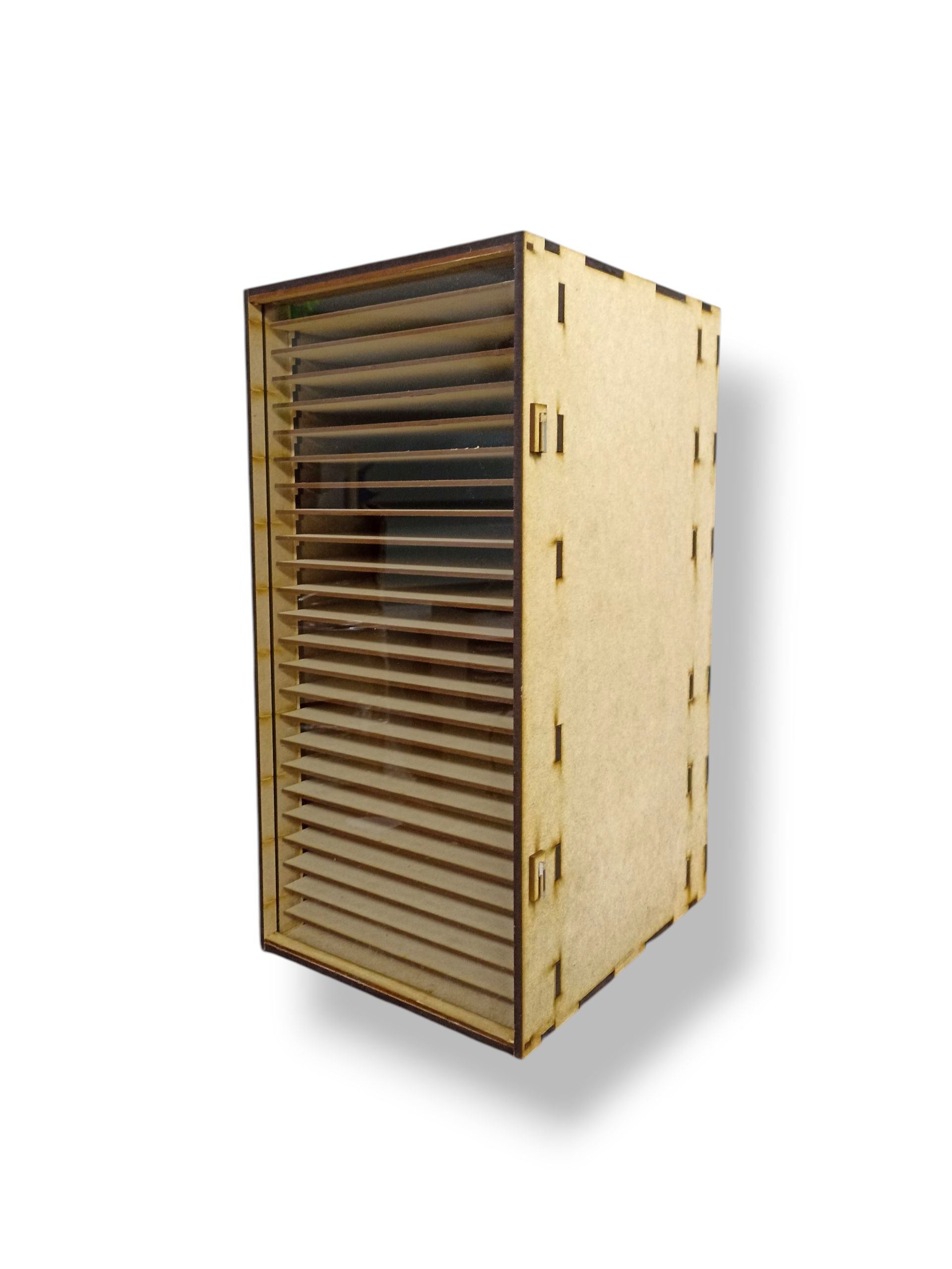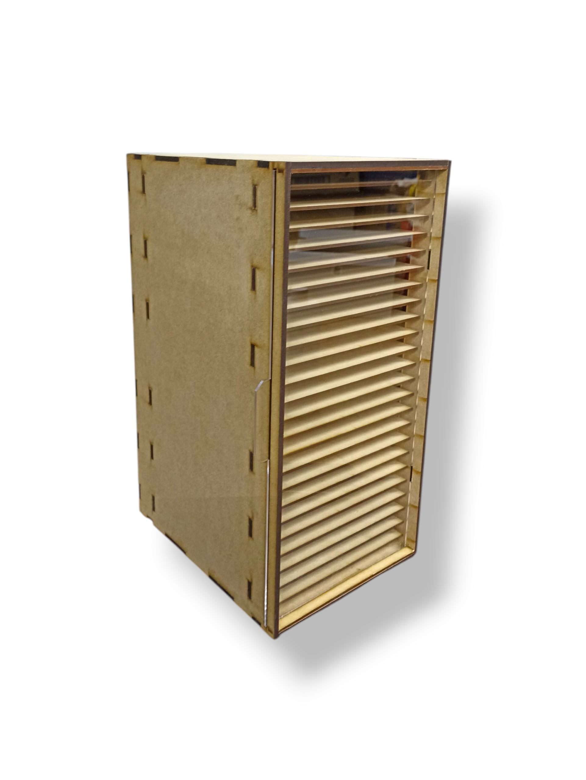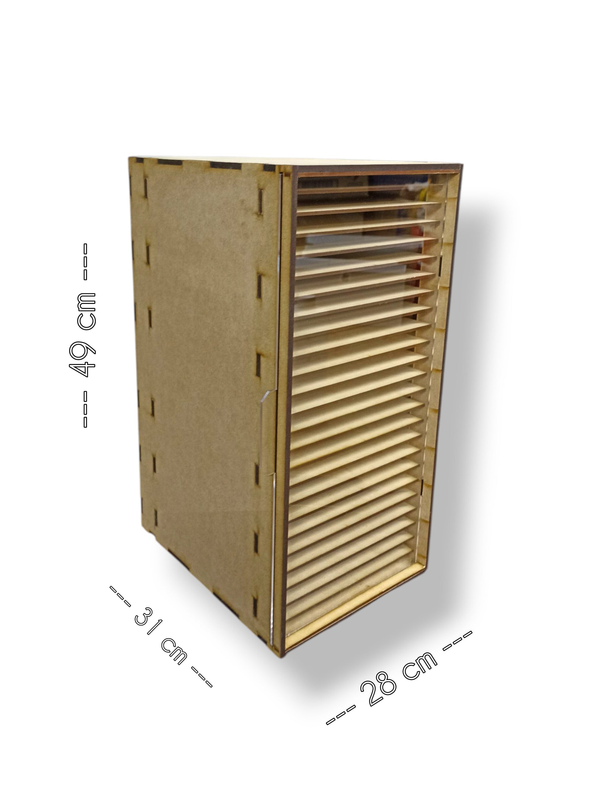 Fabricado en MDF de 6mm, este organizador cuenta con 25 repisas perfectamente dimensionadas para guardar y clasificar hojas de tamaño carta.