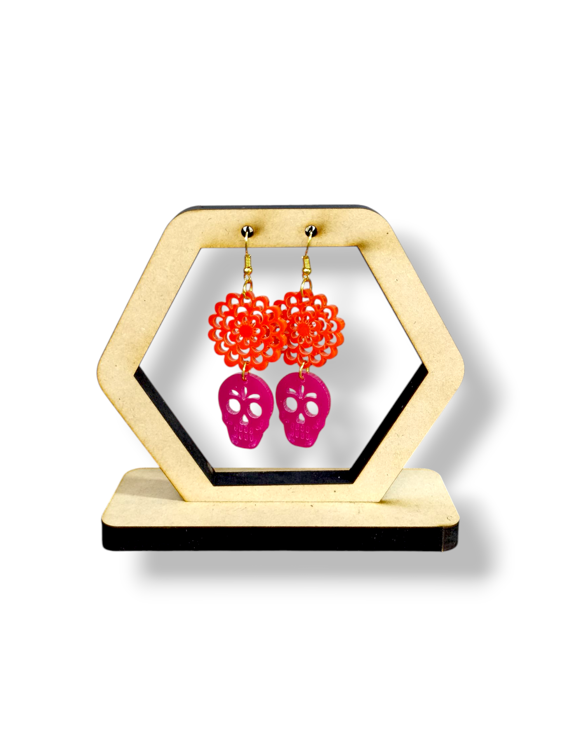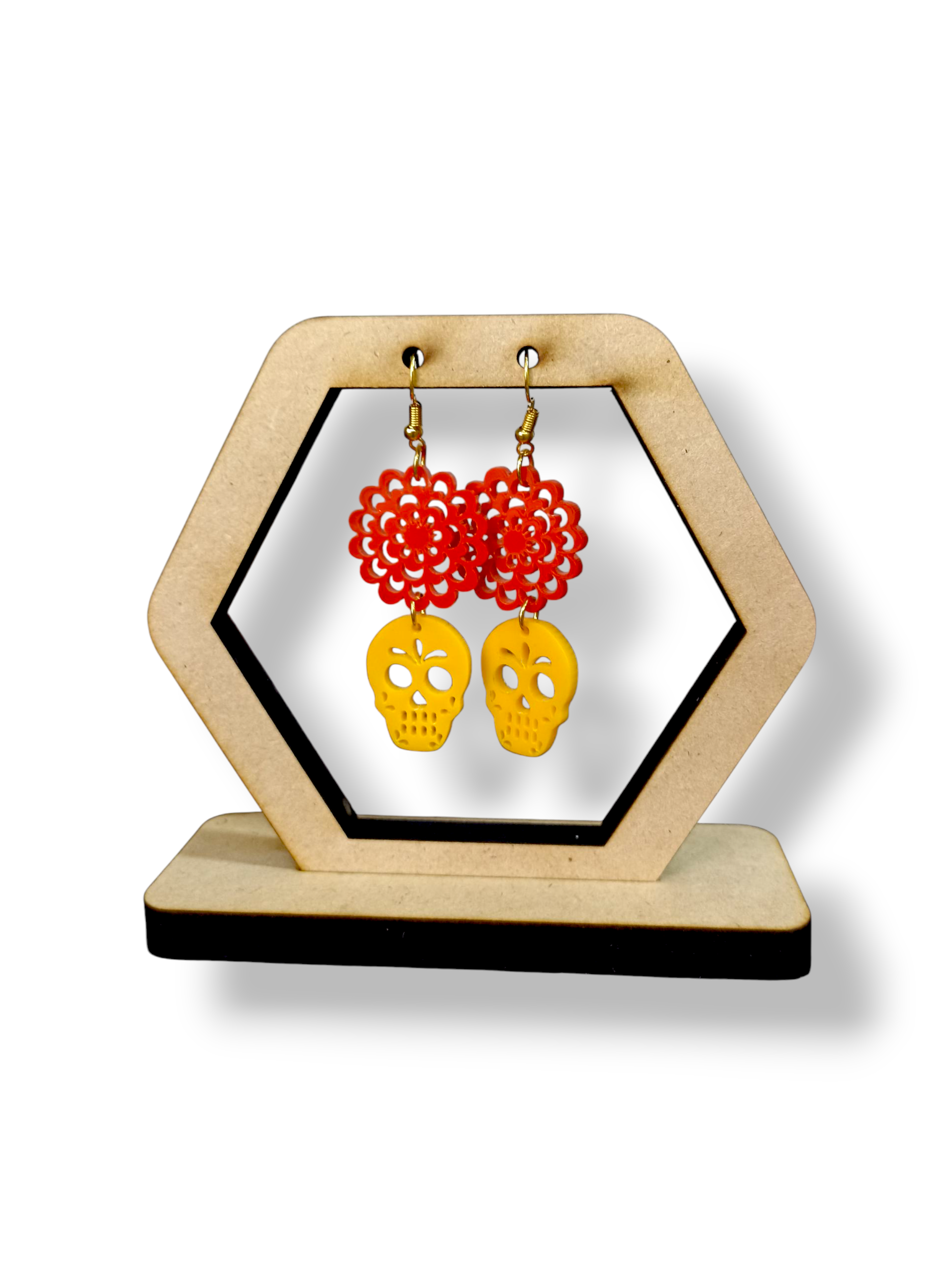Honra la vida y la memoria con nuestros aretes de cempasúchil y calavera.
